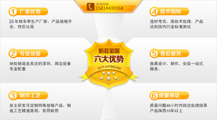 深圳市新亞金屬制品有限公司坐落于沿海經(jīng)濟(jì)中心——深圳,是國內(nèi)城市公共設(shè)施、交通設(shè)施、裝飾工程企業(yè)之一,是一家具有自主研發(fā)和設(shè)計能力的以公交候車亭為主導(dǎo)的綜合性金屬制品企業(yè)。